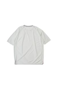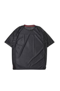 ポリエステル素材を使用したショートスリーブメッシュTシャツ。 フロントアーム、ボディ両サイド、背面ヨークを切り替えることでボディにコントラストを与えている。 レイヤードすることを想定したライトウェイトな仕上がり。バインダーネック仕様。身幅はややタイトなシルエット。