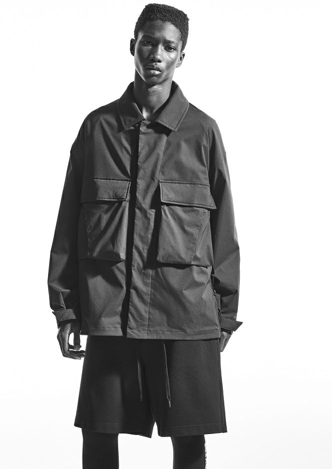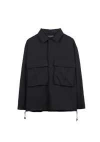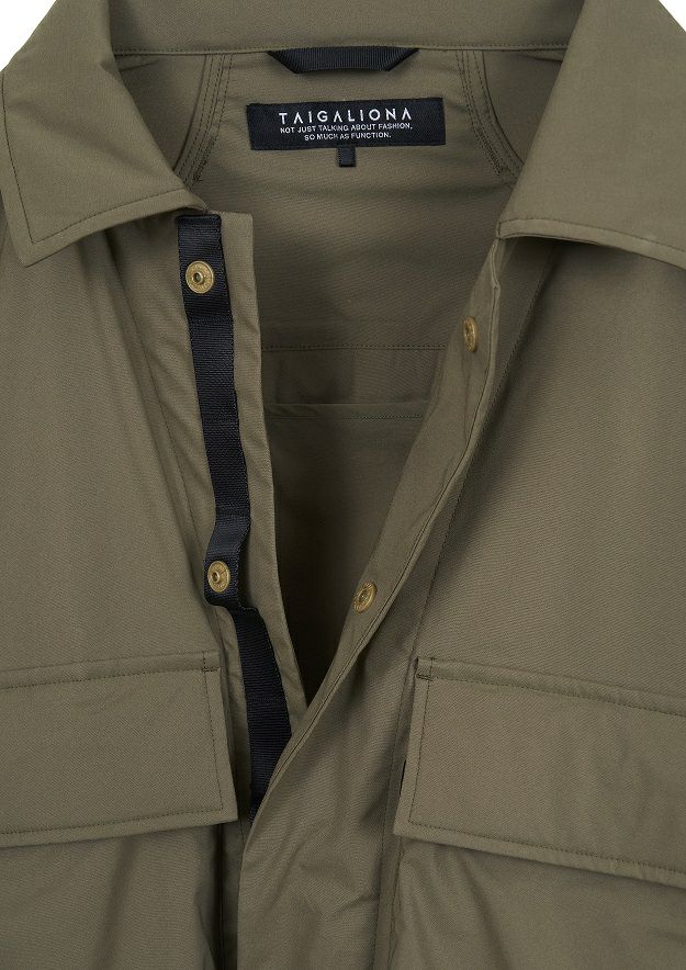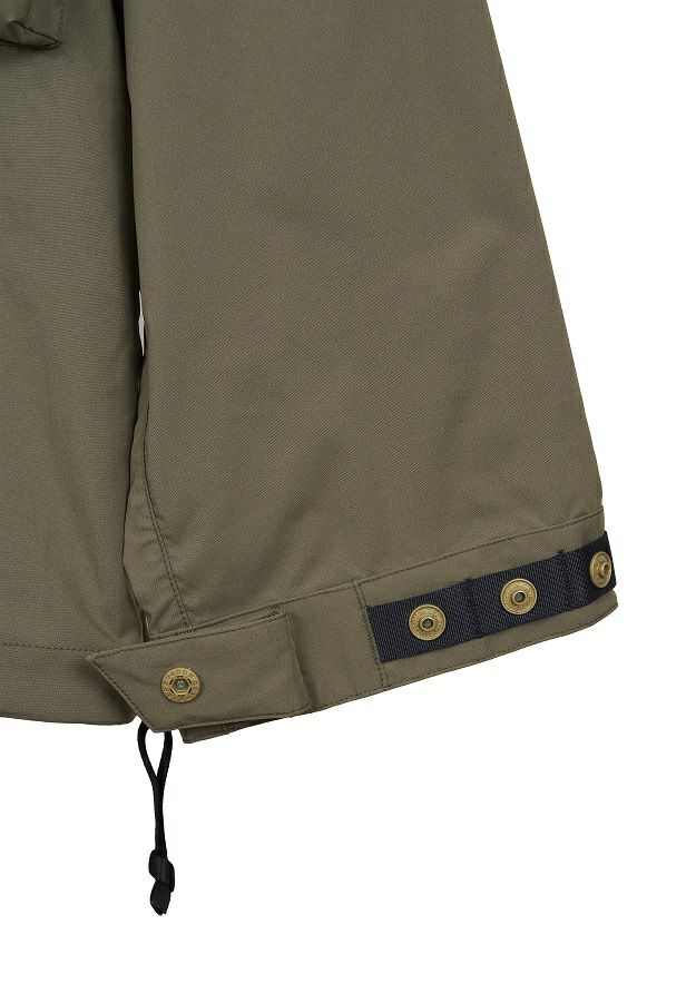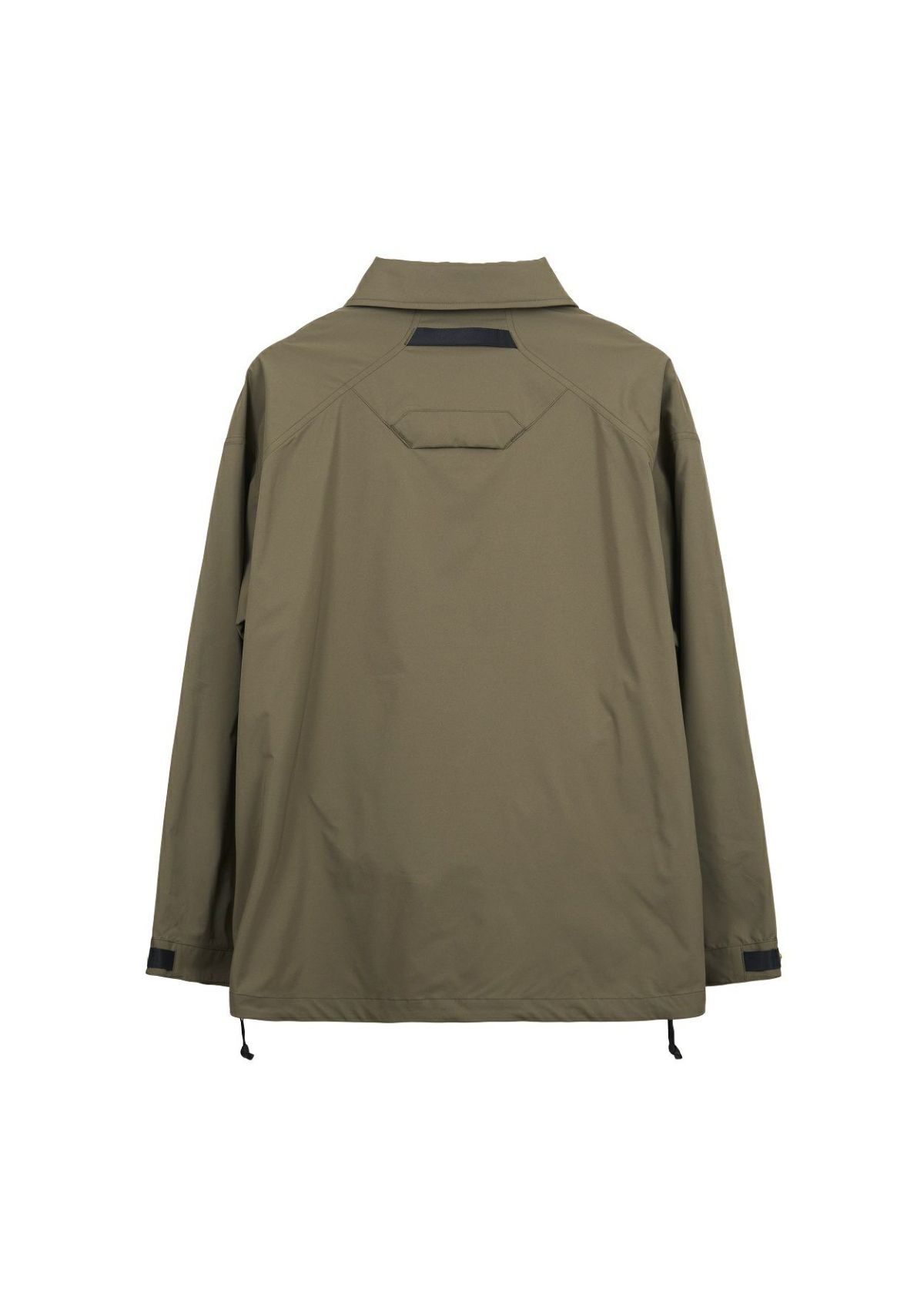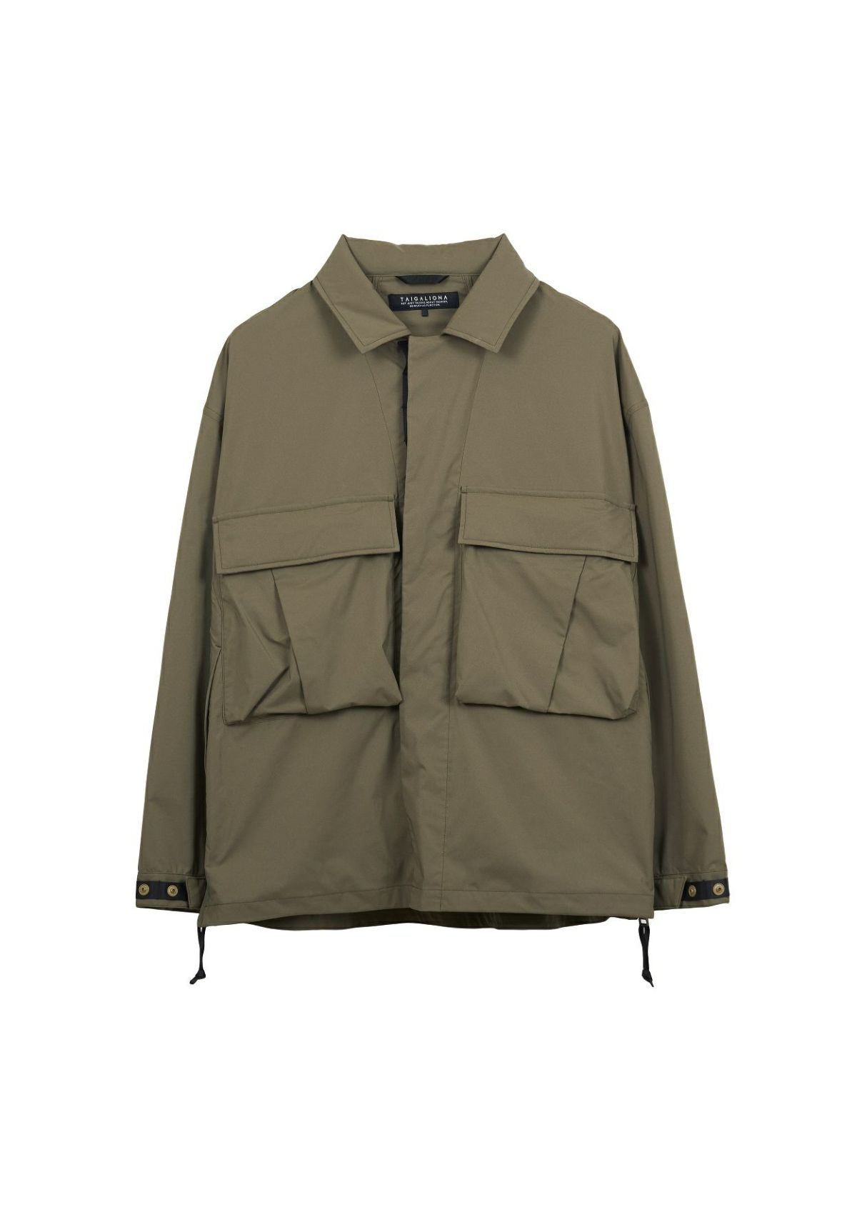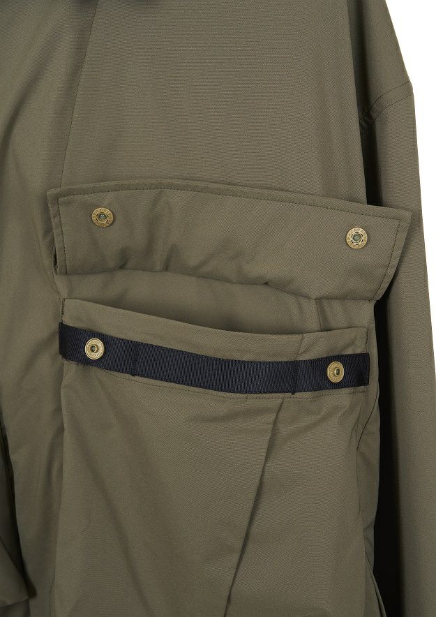 ノンラミネート加工でストレッチ性を持たせた高機能素材MINOTECH®を使用したモンスタージャケット。 表地はマットな質感、雨蓑から発想された凸構造によって水滴をすべり落とす防水仕様。両胸に大ぶりなフラップポケット、身頃の両脇にファスナー、袖口にアジャスターボタンを配置。身幅にややゆとりのあるシルエット。 2色3サイズ展開。