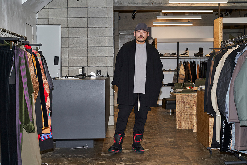 TAIGALIONAを1stシーズンより展開頂いているセレクトショップ<nubian(ヌビアン)>。原宿、渋谷をはじめ今季より上野での展開を頂く中、同店の中でもTAIGALIONAへの理解が深い小島氏に<Danner(ダナー)>を一早く着用頂き、ブランドの世界観ともども表現頂いた。