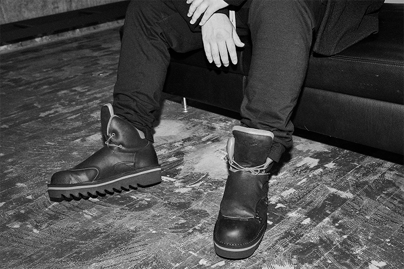 「僕は普段スニーカーをよく履くんですけど、これ(=ダナー)もスニーカーみたいなブーツですね。ソールがすごく柔らかくて履きやすかったです。踝にもクッションが効いていて、まるでスニーカーを履いているみたい。今日もゴツ目のスニーカーを履いていたんですけど、細身のパンツを敢えて合わせてきました。ダナーのブーツとの相性を考えると、ボリュームのあるブーツは細身のパンツに映えるので」。